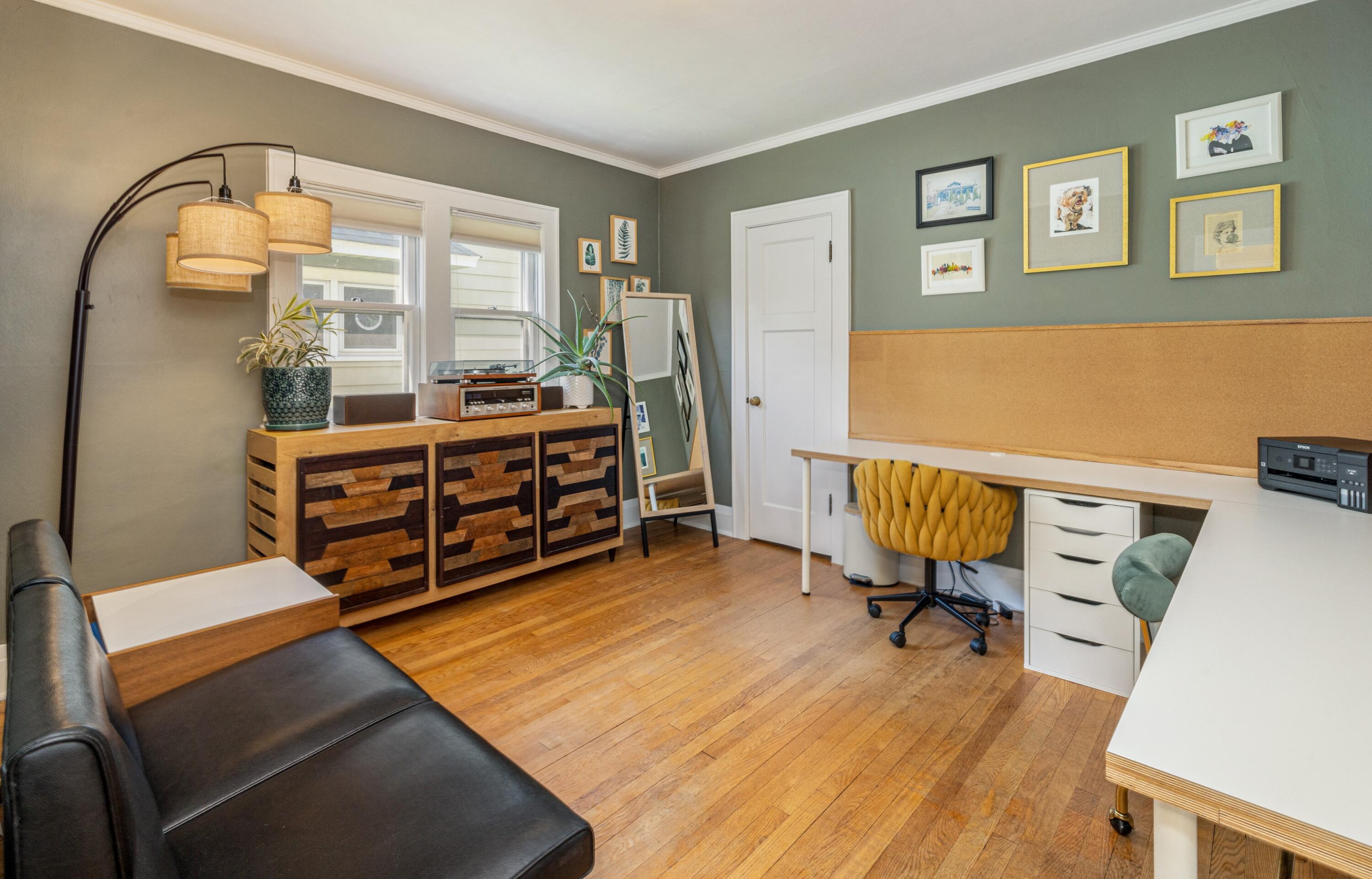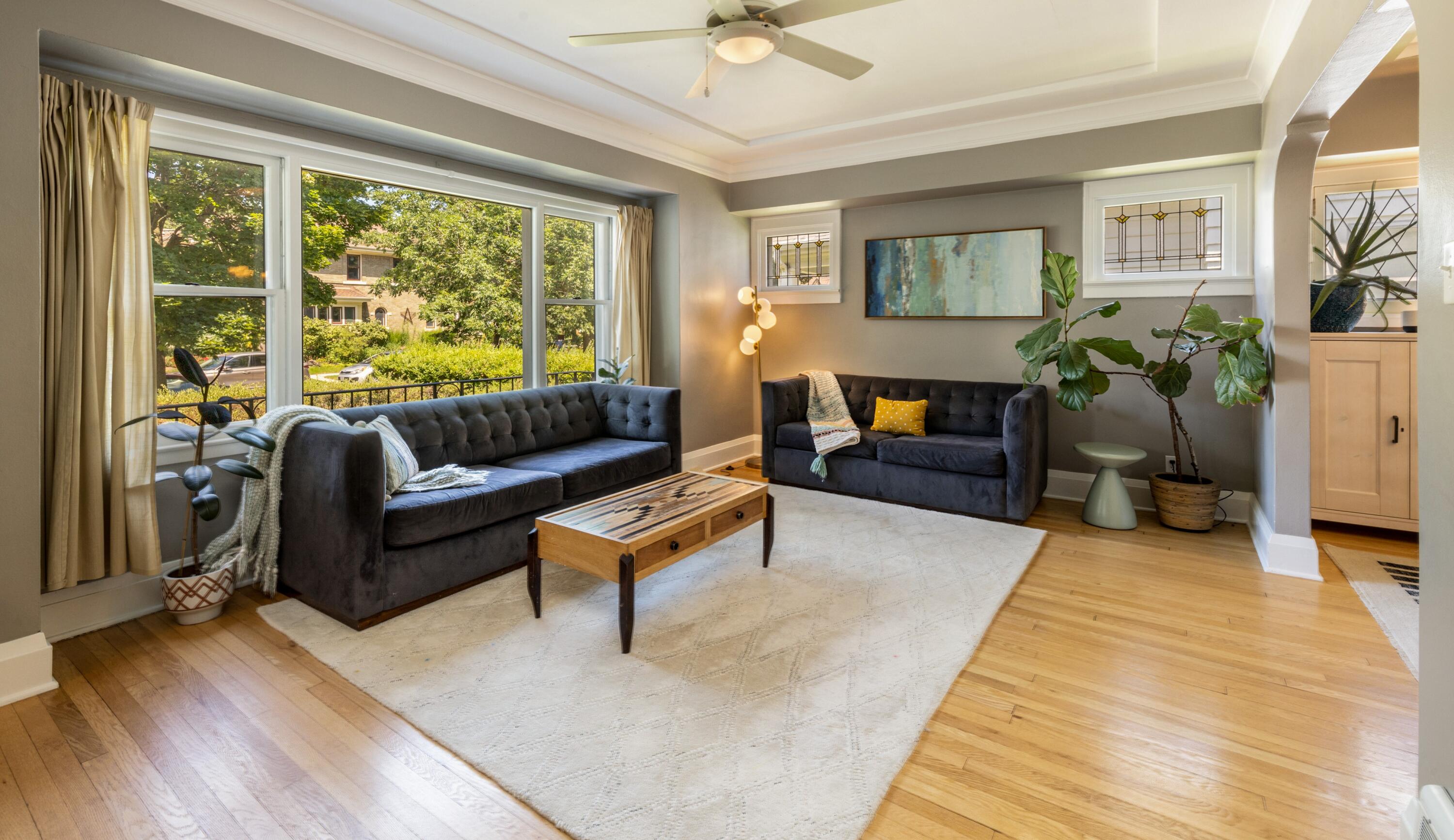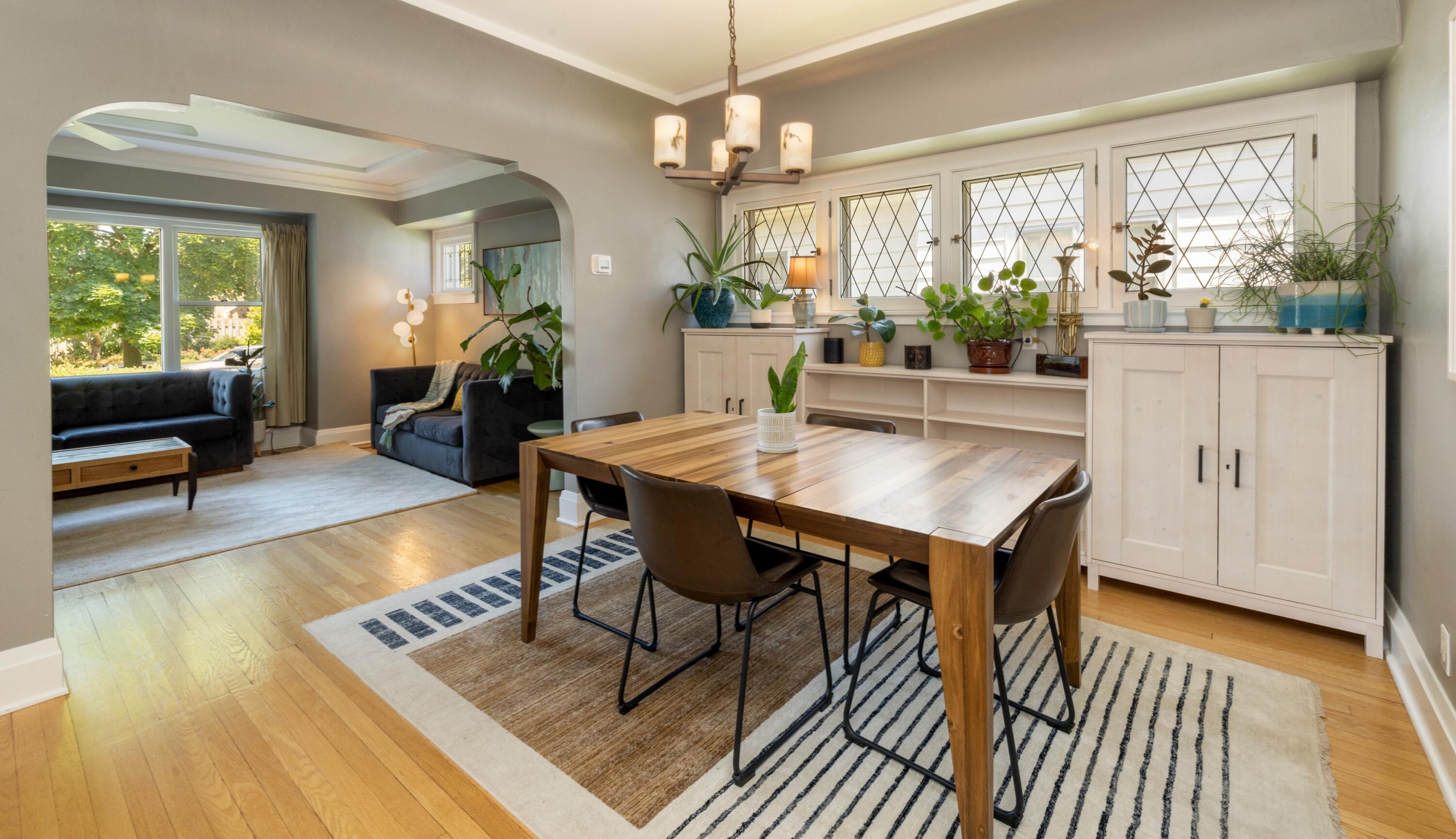 This beautifully maintained bungalow seamlessly blends classic architectural charm with modern updates, making it a standout home. Throughout the house, hardwood floors add warmth, while leaded glass windows in the bright and airy living room and dining room enhance its vintage appeal. The updated kitchen features stainless steel appliances and ample storage, flowing effortlessly from the living areas. The first floor boasts two bedrooms and an updated bathroom, while upstairs offers two more bedrooms, a spacious updated bathroom, and a great office space. A large partially finished basement, a 2-car garage with a parking pad, and a fenced-in backyard complete this exceptional property. This home is a testament to meticulous care and attention to detail, ready for its next lucky owner!